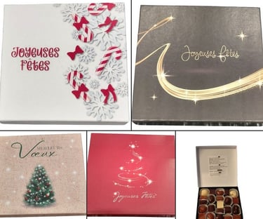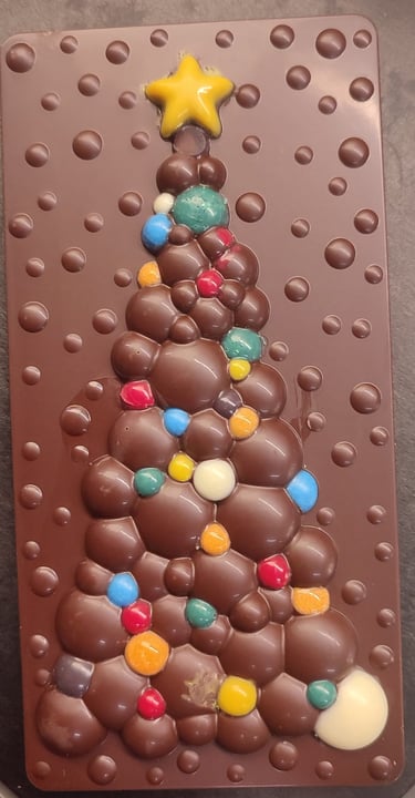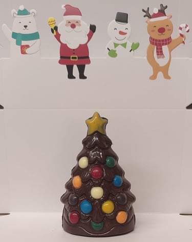 Moulage sapin en chocolat noir, lait ou blanc décoré.