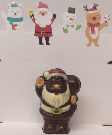 Moulage père-noël en chocolat noir, lait ou blanc décoré.